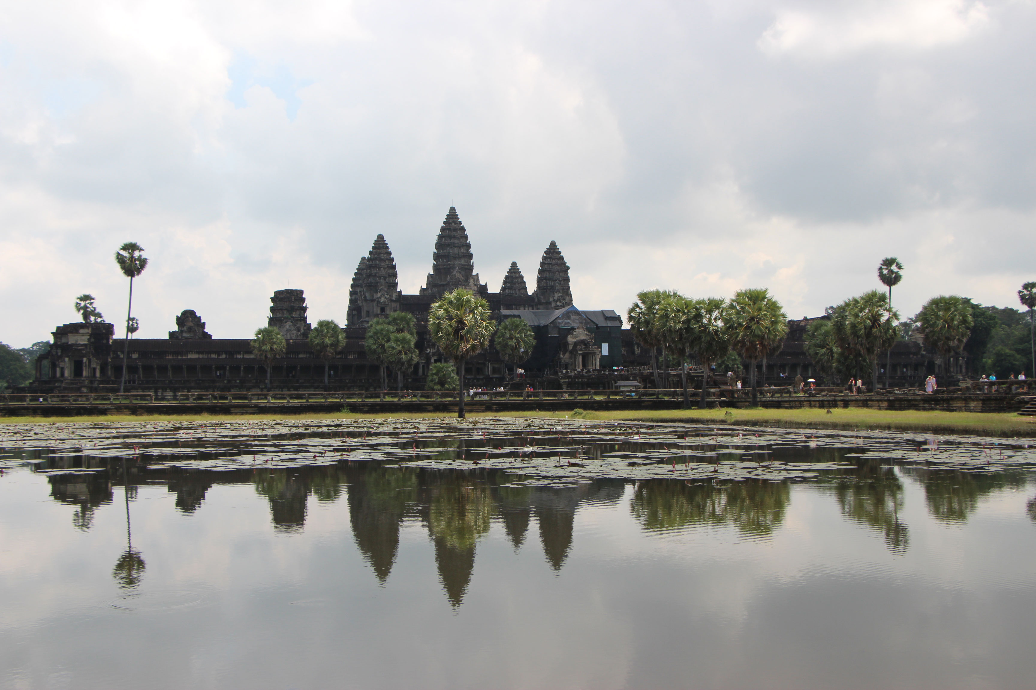 Az első fél napot Angkor Watban töltöttük, ami előbb hindu, majd később buddhista templomként fukcionált. Ma is működő vallási központ a hinduk és a buddhisták körében is (egyébként a helyiek egyfajta kevert hindu-buddhista vallást gyakorolnak manapság). A khmer nyelvben Angkor Wat a templomok fővárosát jelenti, és ez nagyon igaz, minden idők legnagyobb vallási célú épület együttesének tartják a világban. A fő épület Kambodzsa jelképe lett, a nemzeti zászlón és a pénzeken is megjelenik. Érdeklődőknek bővebb info itt: http://hu.wikipedia.org/wiki/Angkorvat