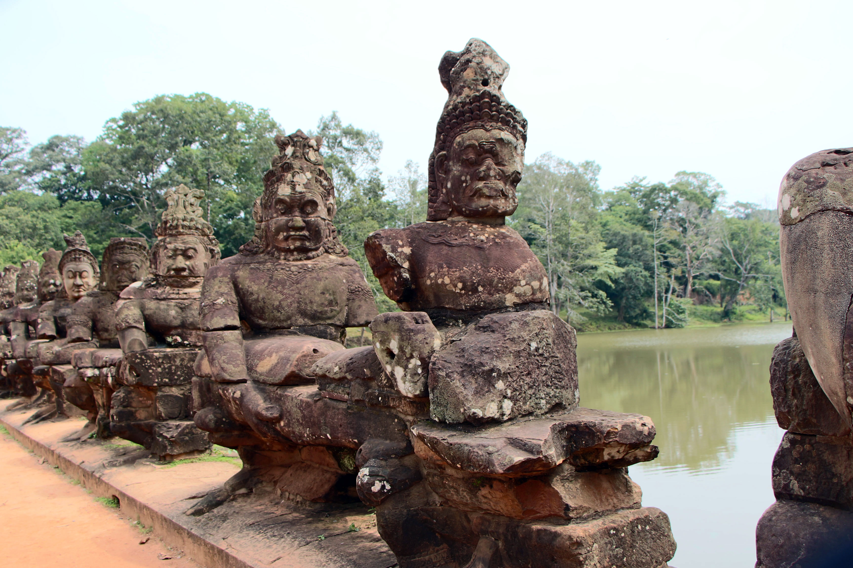 Másnap délelőtt Angkor Thom-ba (Nagy város) látogattunk. Az istenszobrokkal díszített hídon, majd az arcos, elefántos kapunk áthaladva hamarosan a Bajon főtemplomhoz értünk. Az általunk csak arcok templomoként hívott épület együttest díszes, fedett folyosók zárják körbe, amelyek tetejéről 49, lótuszvirághoz hasonló „arcos torony” emelkedik a magasba. Sétánkat a hindu Mennyei templom, majd az Elefánt terasz felé folytattuk.