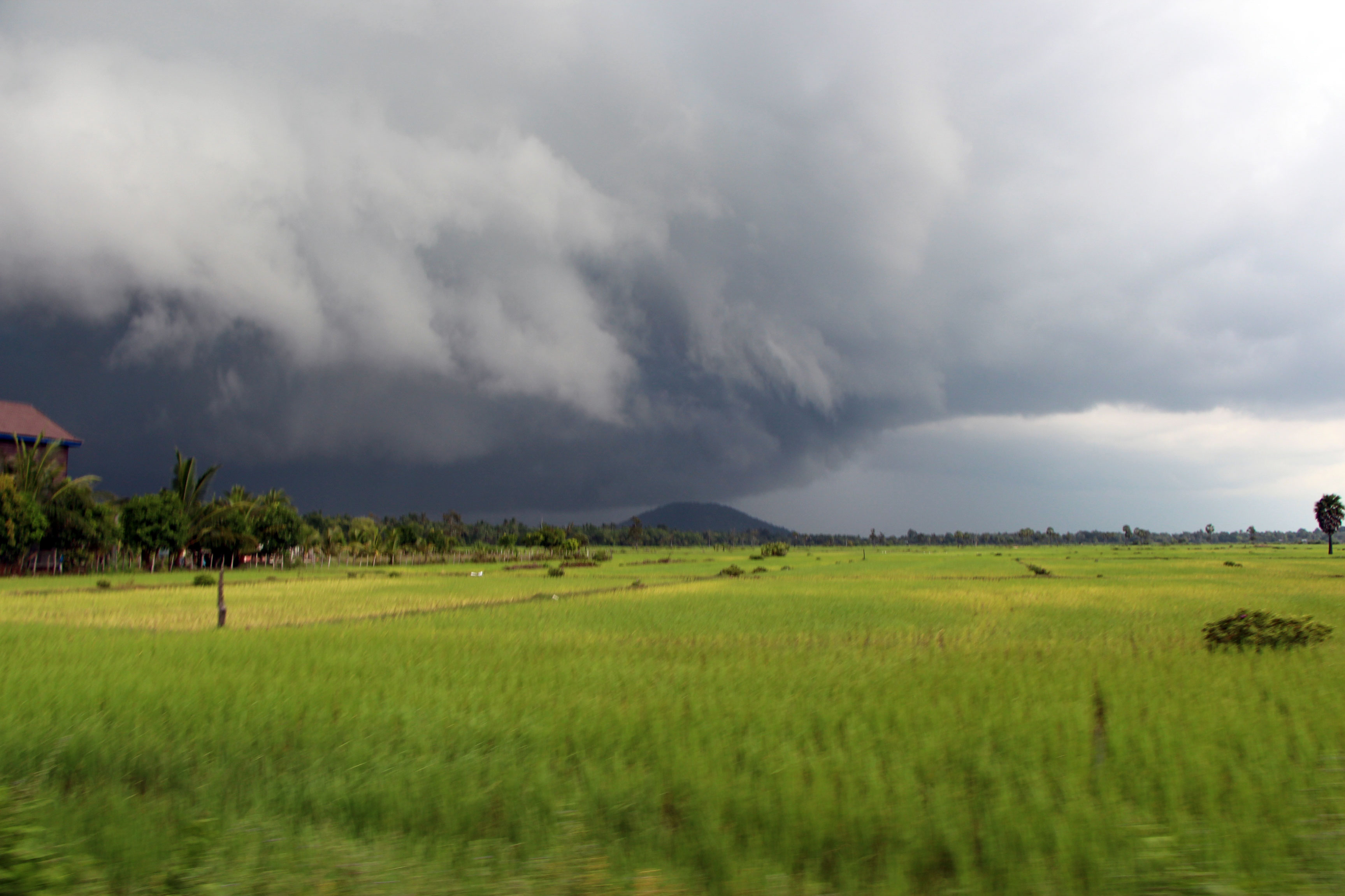 A tuk-tukokkal kb 1 órás útra indultunk, de hamarosan gomoly felhők gyűltek, nagyon nem nézett ki jól a dolog. A sofőrünk meg is állt, felvette az esőkabátját, a tuk-tuk oldalán leengedte a ponyvákat, hogy mi is védve legyünk.