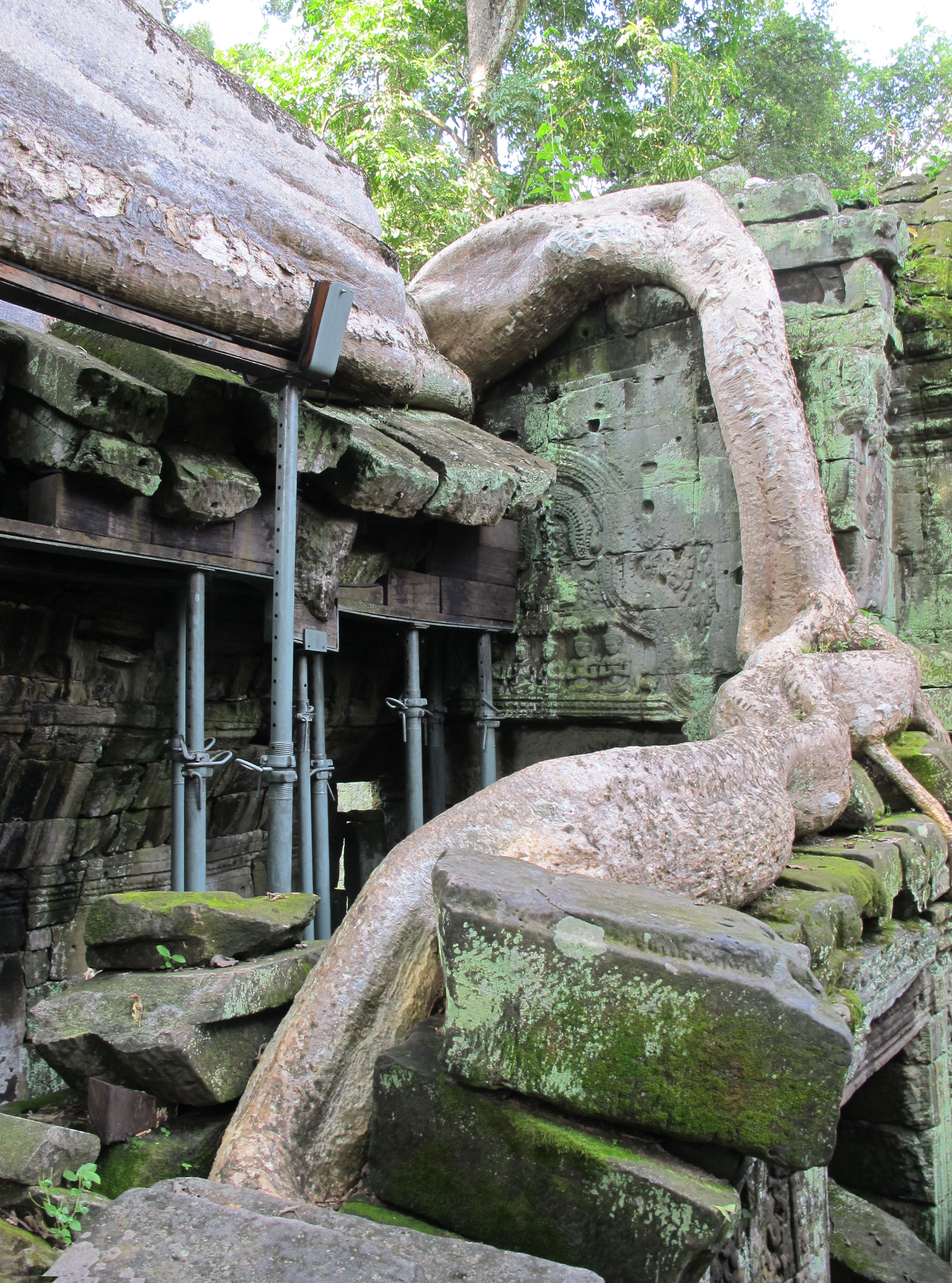 Délután a Ta Prohm-ban, a buddhista templom kolostorban jártunk, ez utóbbit mindenki csak “Tomb raider” templomnak hívja az itt forgatott film miatt (nem tudom, nekem ez a film kimaradt…). A templomegyüttes a turisták kedvelt látványossága, mert a régészek szinte abban az állapotban hagyták, ahogy anno megtalálták, sok épületet szinte benőttek a fák hatalmas gyökerei. Érdeklődőknek további info itt: http://hu.wikipedia.org/wiki/Ta_Prohm