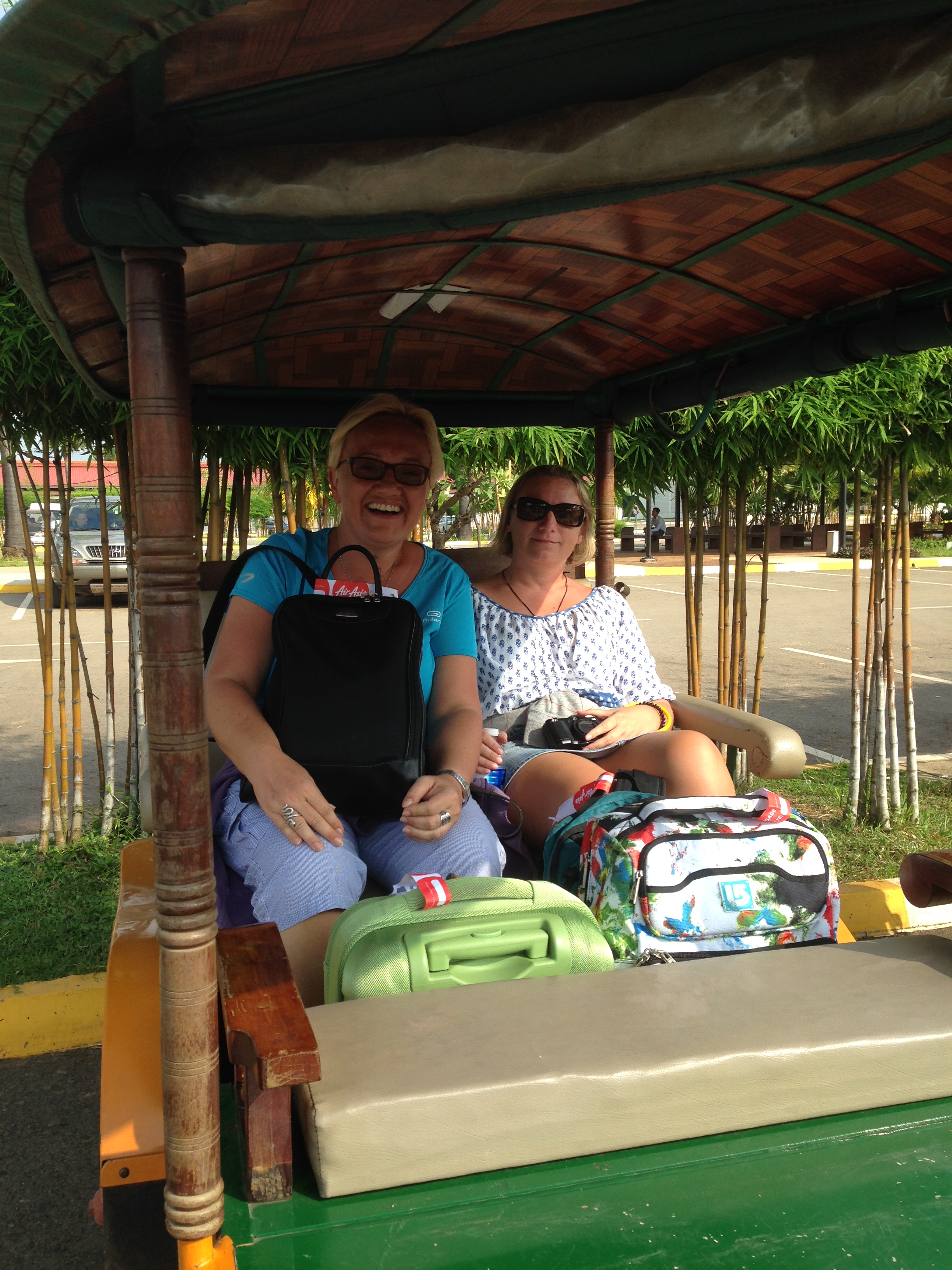 A hotel tuk-tuk-ot küldött értünk a reptérre, táblácskával 2 mosolygós fiatalember várt minket, majd a parkolóba kísértek. Kedvességből nem egyből a hotelbe vittek, némi kerülővel azonnal bepillantást nyerhettünk Angkor csodáira.