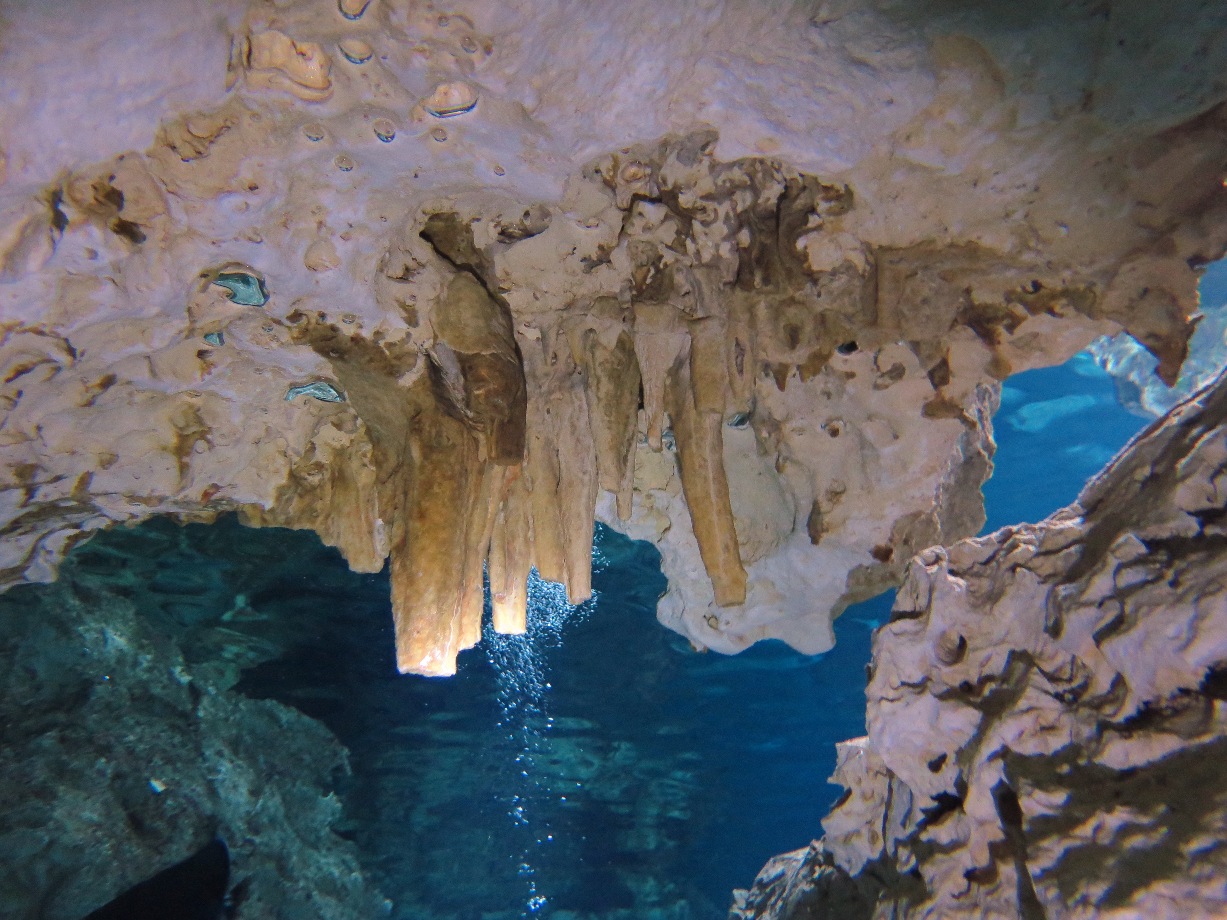 Eddig rendben is van, de cseppkövek víz alatt? Igen. Miután kialakultak ezek a barlangok, a Föld klímájában nagy változás következett be. Egy jégkorszak. A bolygó vízkészletének jelentős része jég formájában halmozódott fel az északi és a déli sark körül kialakuló jégsapkákban. A félsziget földrajzi fekvéséből kifolyólag, az eljegesedés ezt a zónát nem érintette, így a vízszint csökkenésével a barlangok szárazzá váltak. A száraz barlangokban a jól ismert módon megindult a cseppkőképződés és röpke néhány ezer év alatt a természet gazdagon feldíszítette a termeket álló-, függő-, szalma cseppkövekkel és zászlókkal. A jégkorszak vége közeledtével a jég olvadni kezdett és megindult a vízszint emelkedése. Nagyjából egy időben, a Yucatan-félsziget a tektonikai mozgásoknak köszönhetően lesüllyedt és szépen lassan a cseppkőbarlangok víz alá kerültek.” (forrás: divecenter.hu)