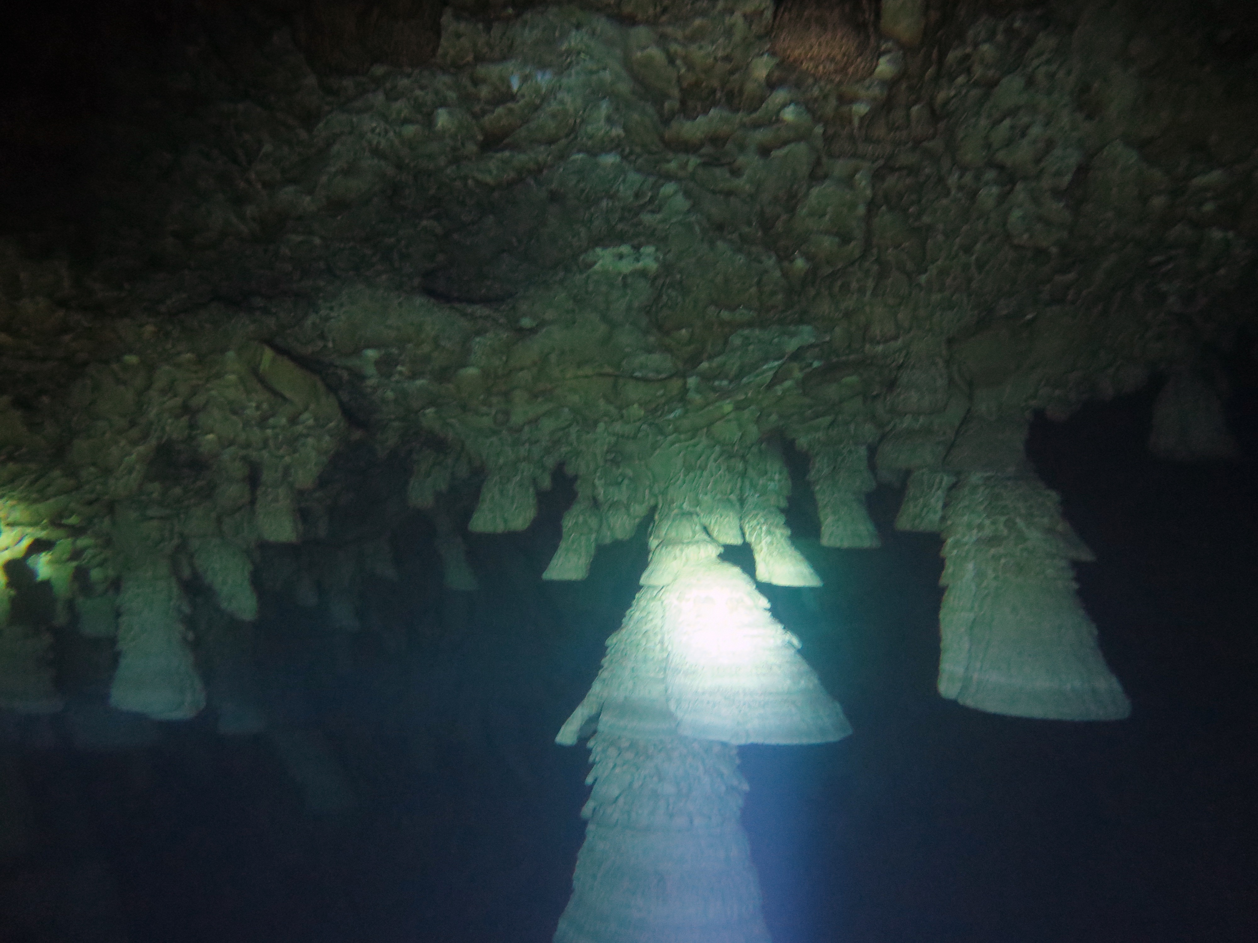 Nagyon érdekes formát alkotó cseppkövek vannak itt, mintha harangok százai csüngenének a mennyezeten, a falakon. Bár láttam videót a helyről, de saját szemmel látni, megélni sokkal fantasztikusabb érzés volt.